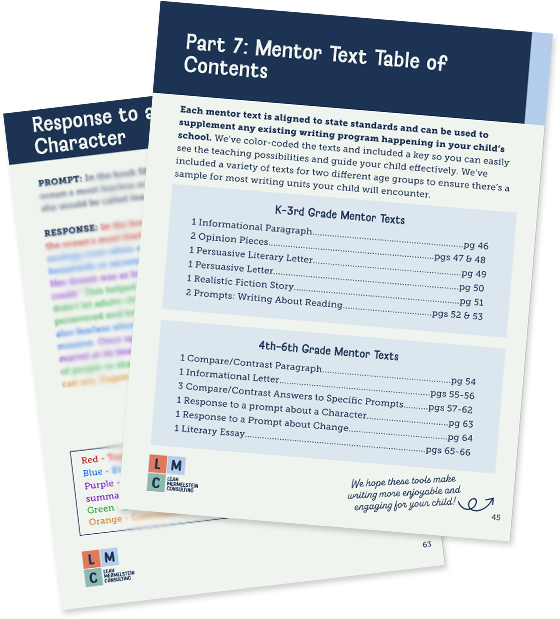 Get ready to unlock the secrets of great writing! Our Family & Caregiver Toolkit includes mentor text examples for grades K-6, breaking down paragraphs, sentences, leads, and endings—so your child can confidently tackle school assignments with the right models and a clear key to guide them!